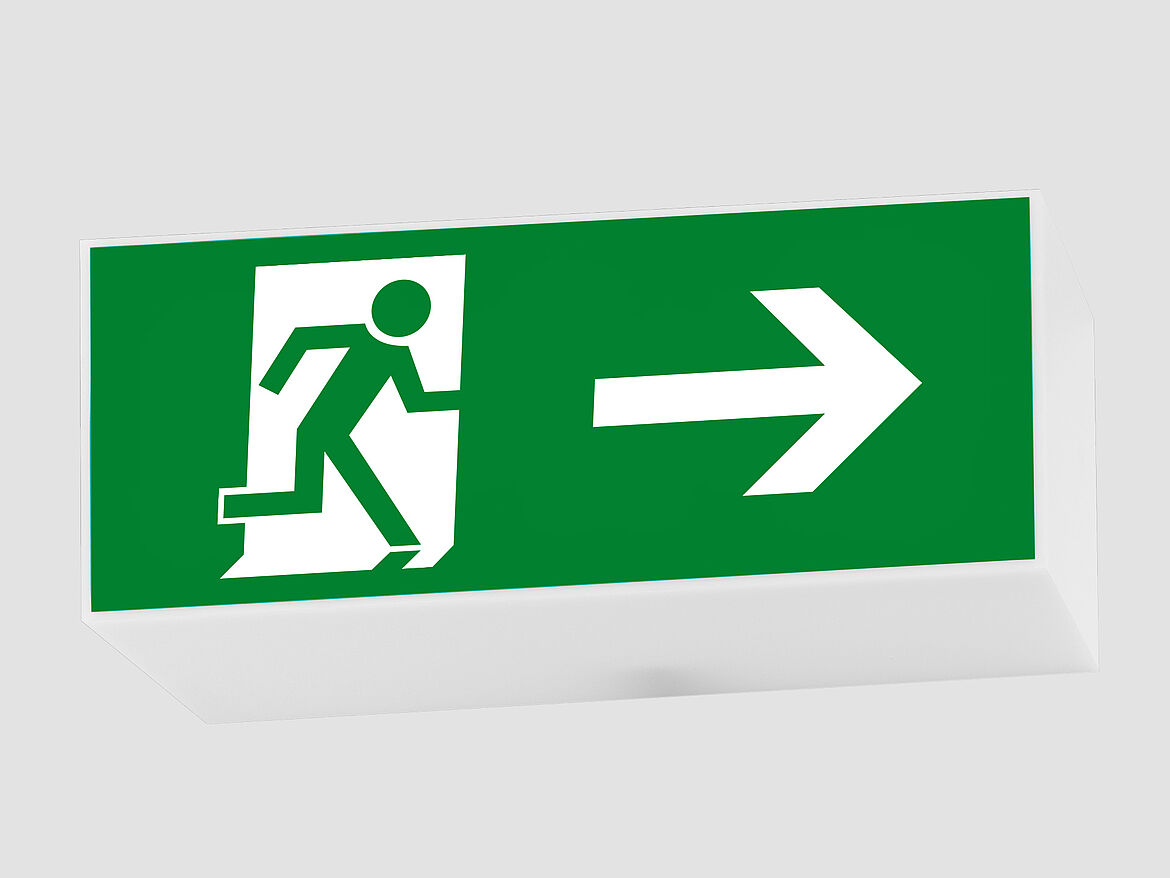 SICUROLUX-GN/GND is an escape sign luminaire in accordance with DIN EN 60598-1/-2-22 and DIN EN 1838. The frame is made of white galvanised metal and is equipped with glass-retaining clips and is particularly characterised by its practical design. The different versions of the escape sign luminaire allow mounting on walls (SICUROLUX-GN) and ceilings (SICUROLUX-GND). The accessories, consisting of pictograms, replacement glasses and a base plate for surface-mounted installation, make SICUROLUX-GN/GND versatile.